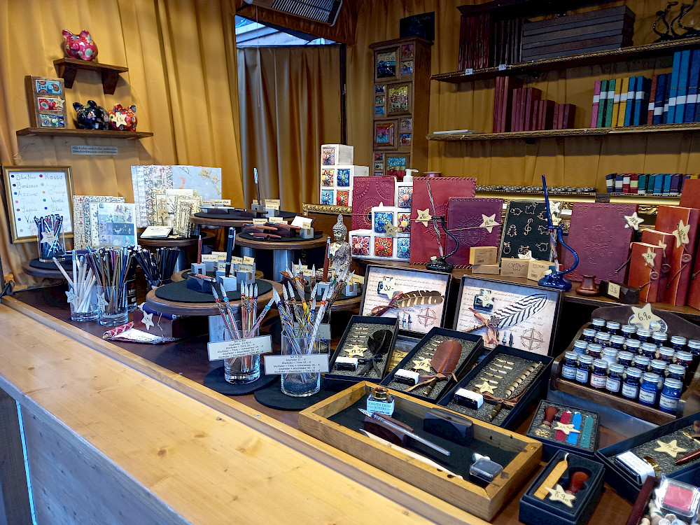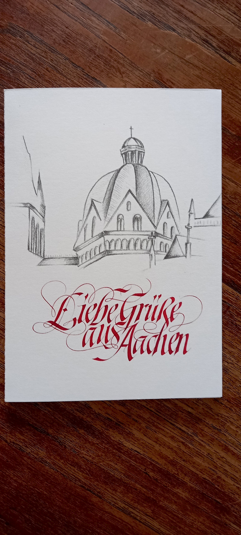 Sie können bei uns eine in Zusammenarbeit mit einer Aachener Kalligraphin illustrierte Weihnachtskarte mit Feder und Tinte schreiben und über uns direkt versenden.