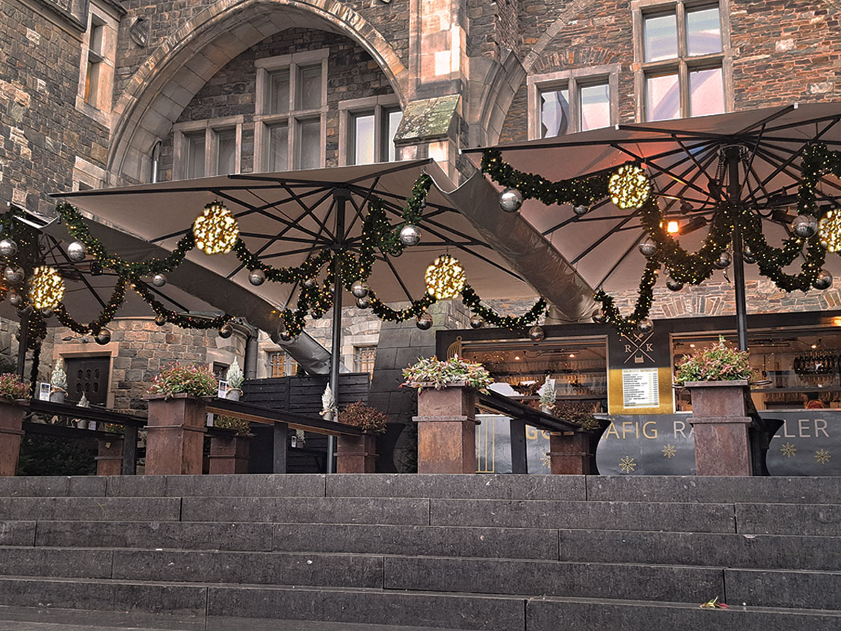 Gold cage on the terrace of the Ratskeller: enjoy mulled wine, eggnog and much more with a fantastic view of Aachen Cathedral.