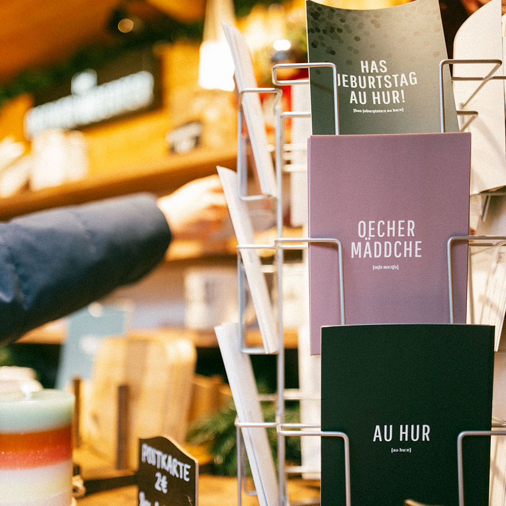Öcher Wörter peut dès la cinquième année remplir le marché de Noël d'Aix-la-Chapelle et nous en sommes très fiers dans toute l'équipe. Chaque année est spéciale pour nous au Marché de Noël d'Aix-la-Chapelle. Et cette année encore plus, car nous sommes en mesure de présenter notre toute nouvelle collection pour la première fois en dehors du monde en ligne.