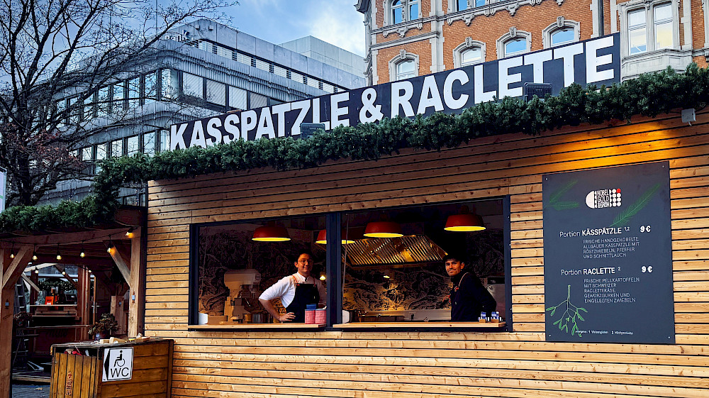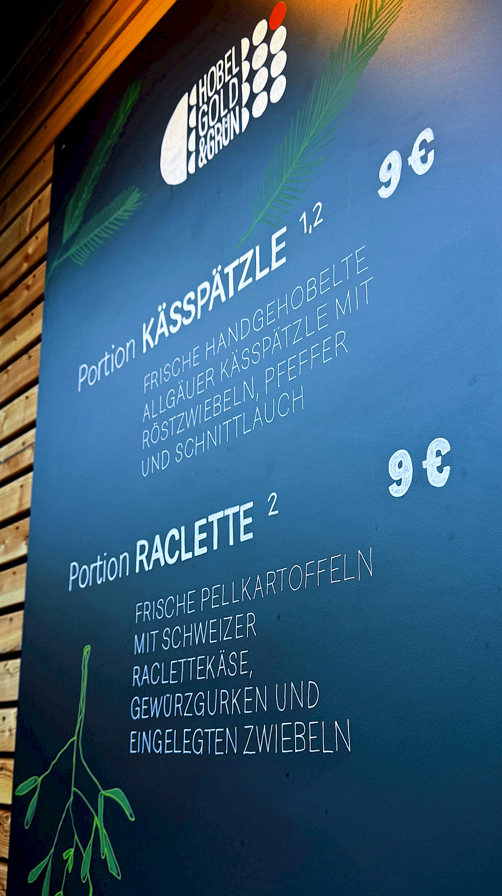 Wir servieren echte, handgehobelte Allgäuer Kässpätzle – frisch und mit Liebe zubereitet. Dabei setzen wir auf die besten Zutaten aus der Region: hochwertiger Allgäuer Käse, frische Eier von regionalen Höfen, knusprig geröstete Zwiebeln, feiner Schnittlauch und aromatischer schwarzer Pfeffer. Bei uns schmeckt man die Heimat und die Qualität in jedem Bissen. Kommt vorbei und lasst euch verwöhnen!